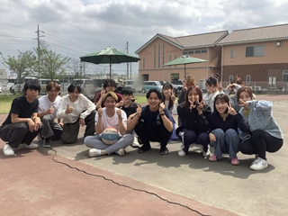 お昼休みに1年生が中庭でランチをしたり、バスケットをしたりして遊んでました