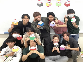 出来上がったものを持ち、男子学生みんなで撮影